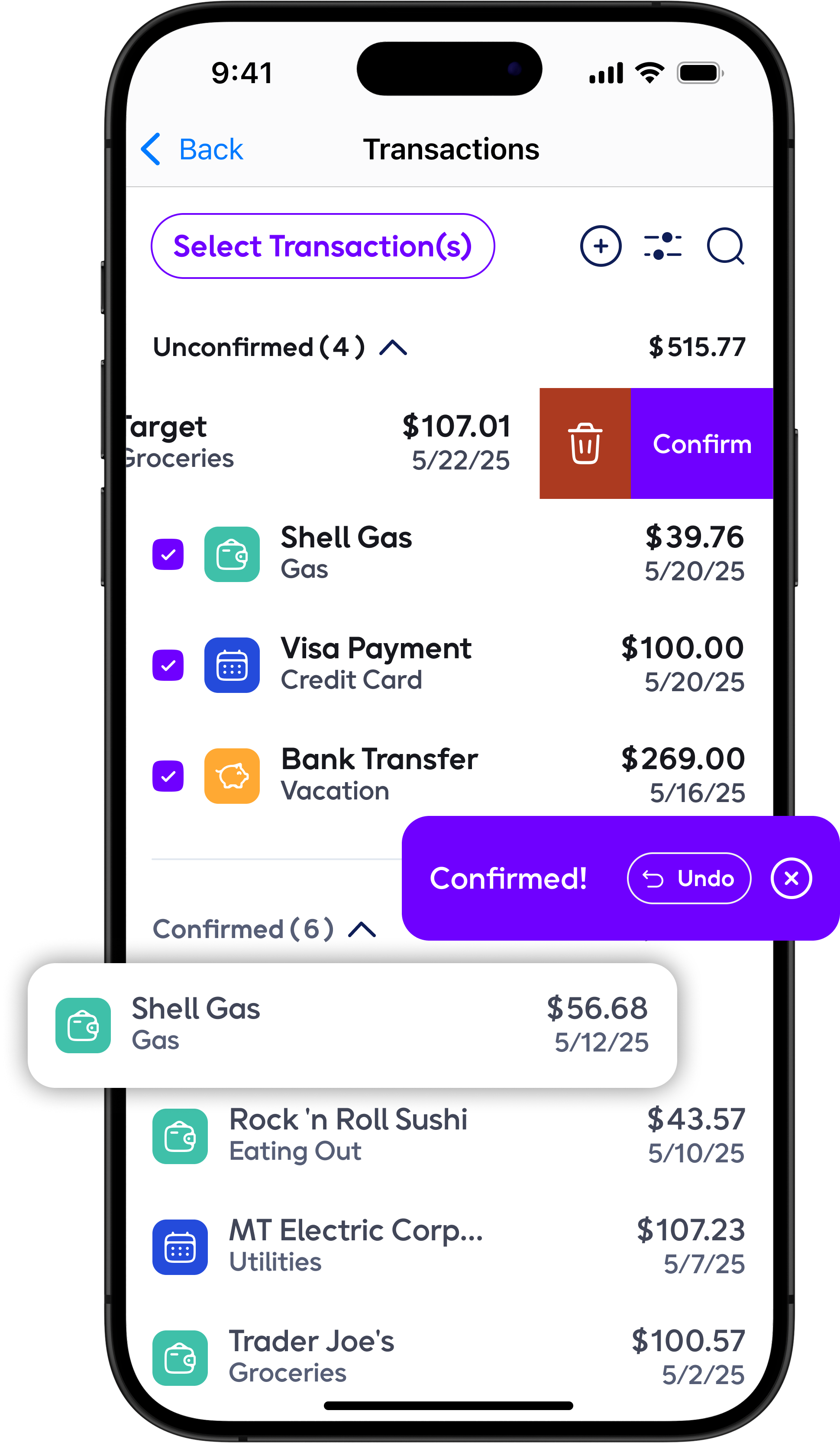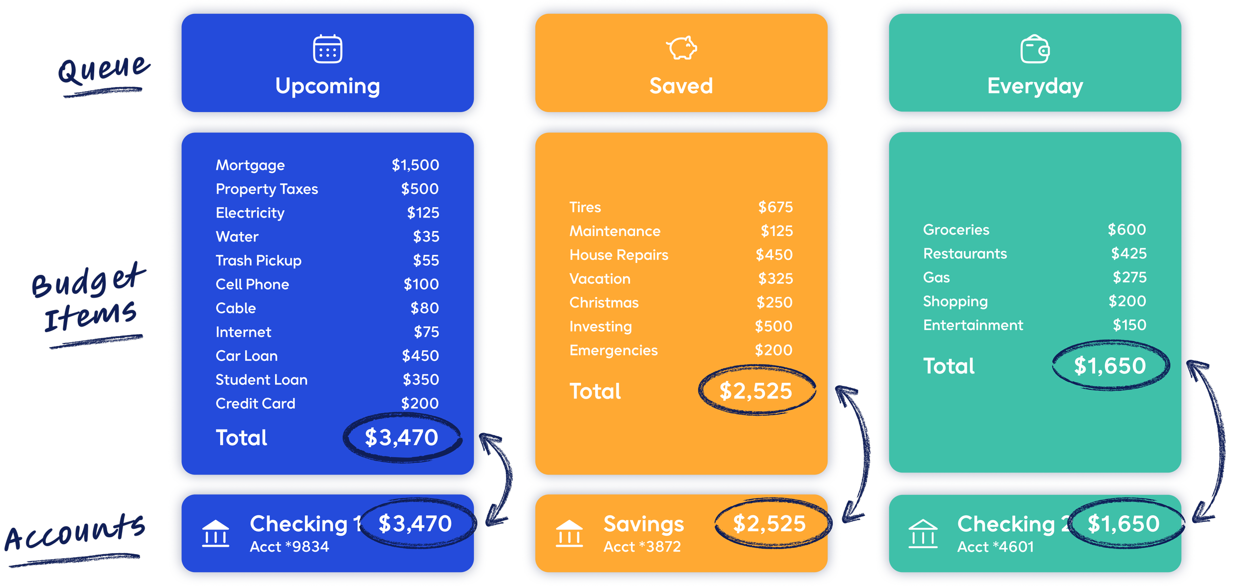 And you can stay on budget throughout the month with just a glance of your queues, knowing the numbers line up with your bank balances.