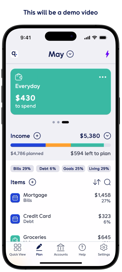 Your budget items and connected accounts get assigned to a queue: Upcoming, Saved, or Everyday.