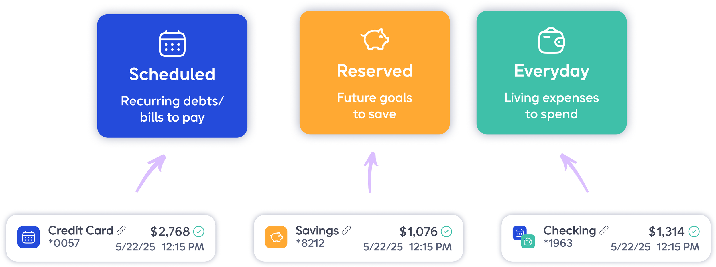 When connecting your bank accounts in Quse, you tell each account its spending purpose by associating it with a time-based queue.